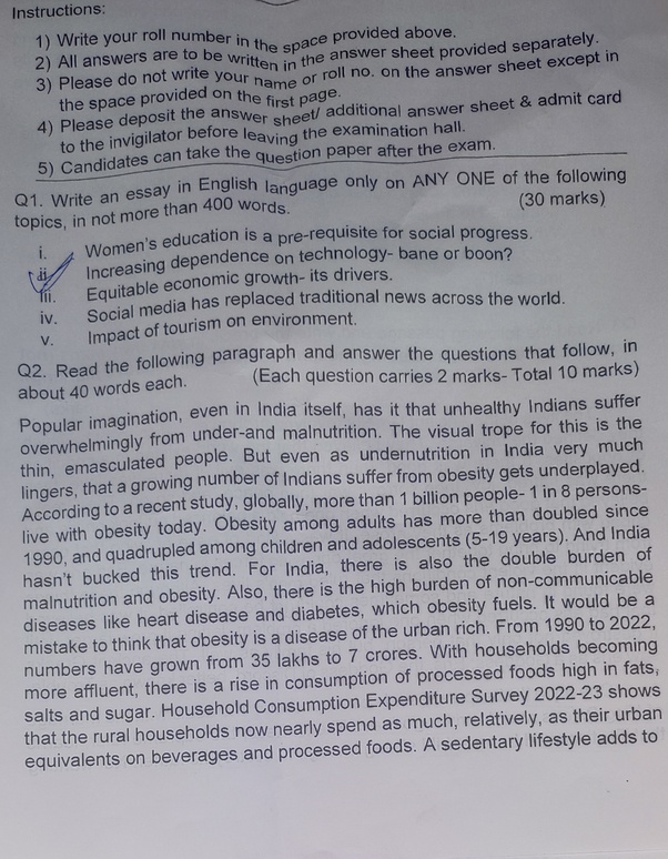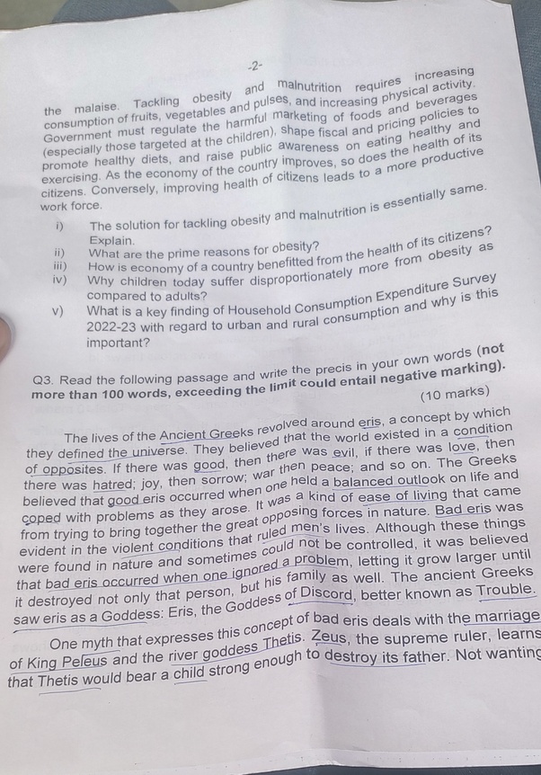 Q3. Précis (Write the précis in ≤ 100 words, based on a passage)
